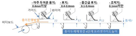 테잎롤러상 폭가이드의 4단계 자동 높이조절